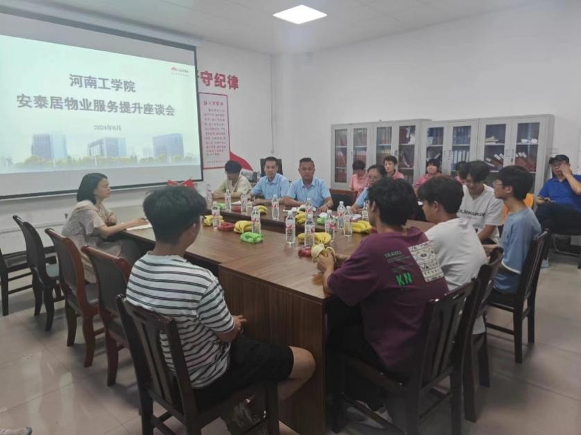为了进一步提升校园居住环境的品质,增强学生的生活满意度,材料学院于6月18日下午4:00在教学五号楼举行了“安泰居”物业服务提升座谈会。此次会议旨在通过集思广益、汇聚智慧,推动物业服务质量的全面升级,为学院师生营造一个更加和谐、舒适的居住空间。材料学院党委书记于明华、院长苏光、党委副书记周慧琳、团委副书记张俊芳及安泰居物业负责人出席本次座谈会。