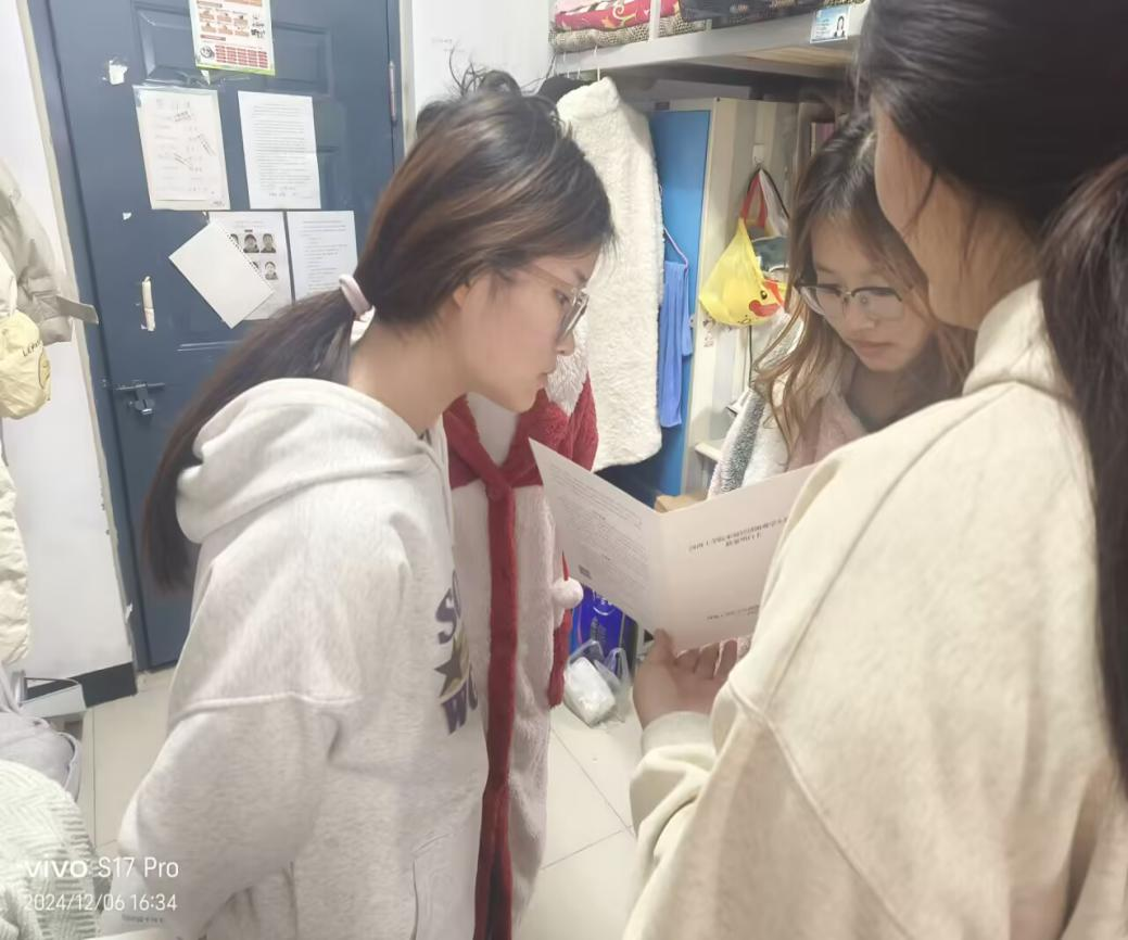 活动期间,我院组织志愿者深入家庭经济困难学生寝室,耐心细致地为同学介绍讲解国家、省市及学校资助政策,确保每位同学都能深入了解,同时深入了解学生困难情况,与学生“心与心”交流,给予他们更多的关心,让同学们在寒冷的冬日感受到学院的温暖。“学校的这些政策太贴心了,志愿者们也很热情,让我们在寝室就能了解到这么多有用的信息,真的特别感动。”一位同学感激地说道。