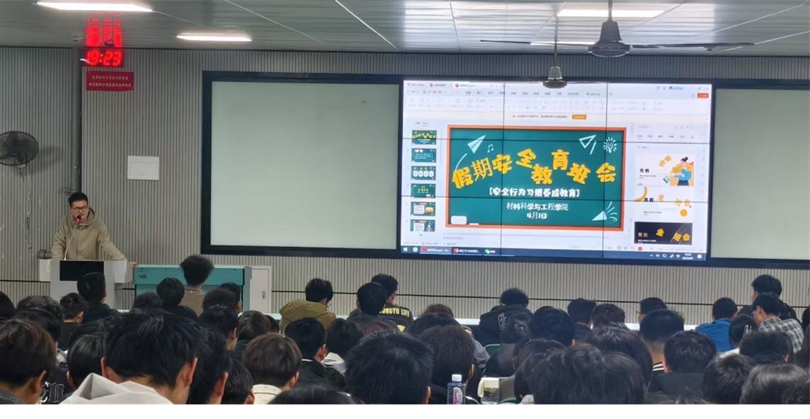 会议伊始,叶老师通过列举多个鲜活事例,向同学们阐述了日常生活安全的重要性以及面对应对紧急情况时正确的处理方法。随后播放了一段关于生命安全的科普视频,视频内容包含急救常识和危机处理规范,引发学生对安全问题的现实思考。在安全教育环节,叶老师用幽默、风趣的语言从网络、社交等多个方面为大家进行思想教育,让同学们轻松的气氛下牢记安全准则。会议结尾,叶老师再次强调安全规范的重要性,提醒学生假期需注意人身、财产及公共安全,同时预祝全体同学度过一个充实的假期。