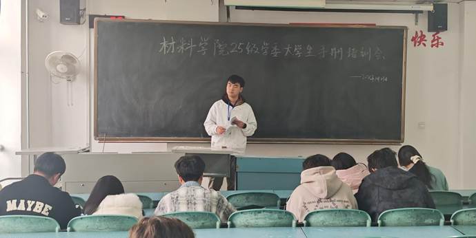 为助力25级新生快速熟悉学校规章制度,强化纪律观念与规则意识,夯实优良学风建设基础。10月25日晚,材料学院在教学楼一号楼组织开展25级新生《大学生手册》指南考试。