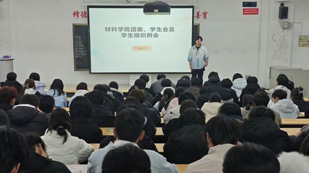 为持续优化学生组织工作质效,夯实学生干部履职能力。12月7日,材料学院团委、学生会及学生组织于教学一号楼A404教室召开工作会议。会议由叶好运老师主持,全体学生会成员参与。