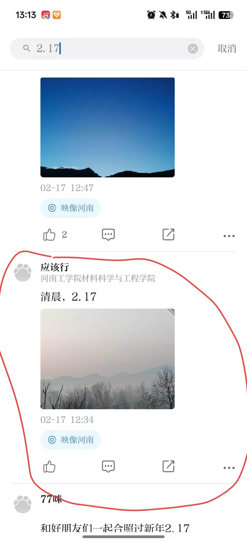 为引导学生探寻家乡之美、感悟时代变迁、厚植家国情怀,河南工学院材料学院积极组织学生参与由河南广播电视台大象新闻主办的“康康我家乡”寒假特别征集活动。近日,赛事结果正式揭晓,我院白扬、曹俊豪、魏兆佳等多名学子凭借优质影像作品荣获优秀奖,用镜头定格家乡风貌,展现了材料学子的青春风采与人文素养。