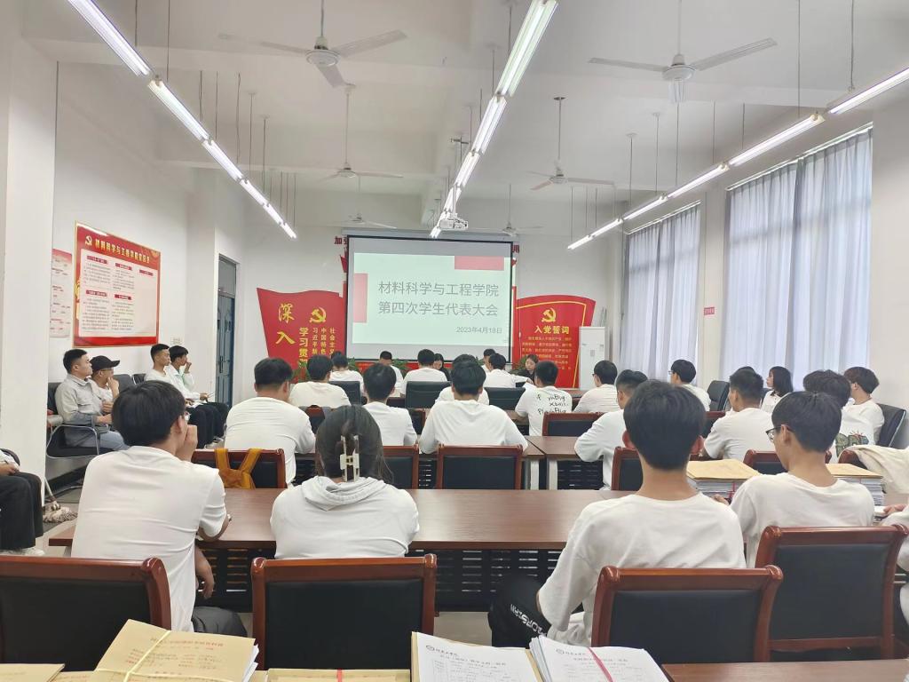 为推动学院发展建设,助力学生成长进步,材料学院于4月18日下午在教学五号楼305室召开了第四次学生代表大会暨第一次团代会,我院学生代表参加了会议,会议由我院团总支副书记张俊芳主持。