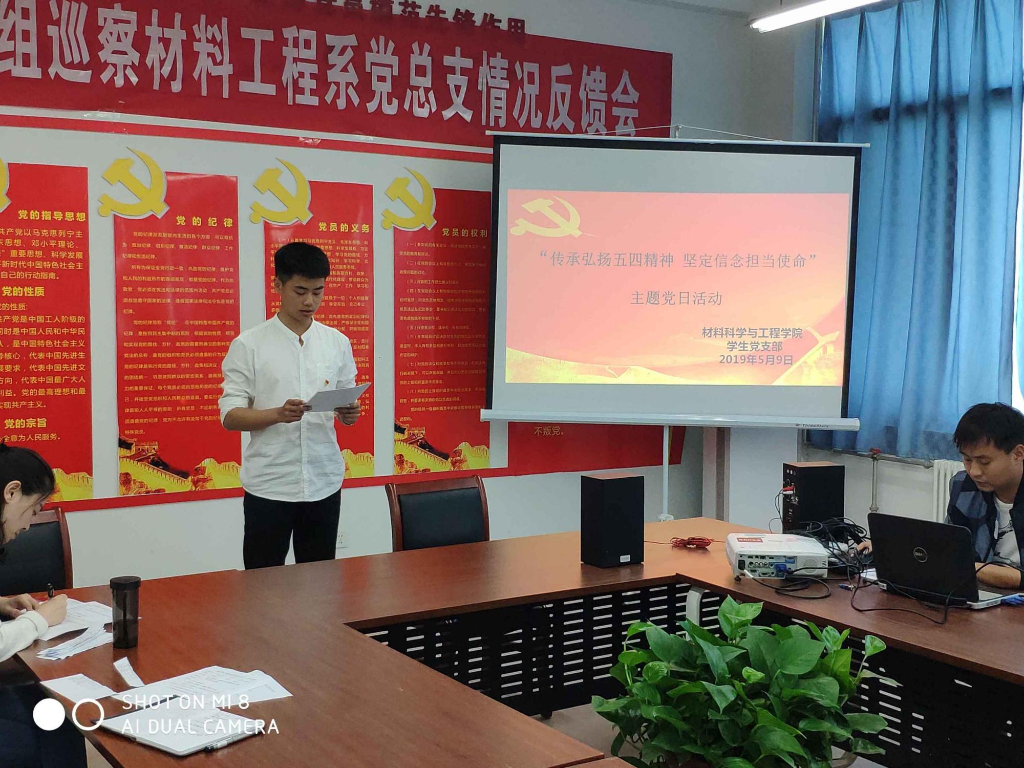 为继承和发扬五四精神,材料科学与工程学院学生党支部于5月9日在实字五号楼305室开展了主题党日活动。支部全体党员参加了活动,王智超老师主持活动。