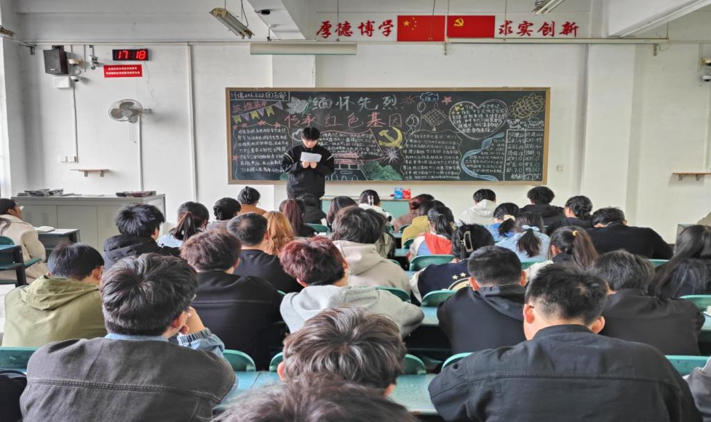 会上,各班团支书带领班内同学共同学习《中国共产主义青年团团员教育管理工作条例》和《基层团组织‘三会两制一课’实施细则》。同时向同学们讲解了先烈们的英勇事迹,大家认识到红色精神是中华民族优秀文化的重要组成部分,它凝聚了先烈们为民族解放和人民幸福事业所付出的巨大牺牲和努力,广大青年们作为时代的希望应传承红色基因,将舍小我为大国精神传承下去,勇于担当责任,敢于创新,并不断加强理想信念,筑牢思想根基。