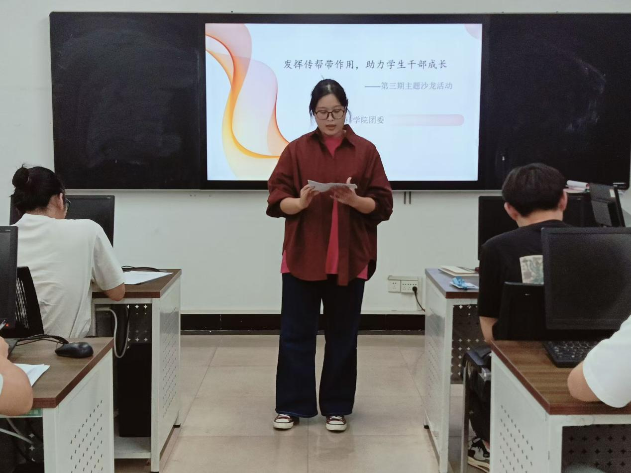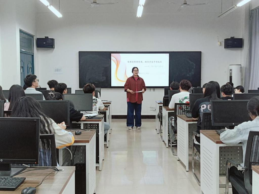 活动伊始,张俊芳老师特别邀请了上届学生会主席、兼职团委副书记范冰冰学姐分享自己从一名普通学生到学生会主席的心路历程。范冰冰学姐指出领导力不仅在于职位的高低,更在于对团队的深刻理解和对目标的不懈追求。她鼓励在座的每位成员,无论职务高低,都要勇于承担责任,敢于创新,以实际行动影响和激励周围的人。随后,范冰冰学姐通过生动的案例,详细讲解了如何在团队中建立信任,以及如何通过有效的沟通解决团队内部冲突。在互动环节,学生干部们积极提问,就如何平衡学业与学生工作、如何提升团队凝聚力等话题展开了深入讨论。范冰冰学姐不仅提供了实用的建议,还分享了自己在面对困难时的心得体会,鼓励大家在挑战中寻找成长的机会。