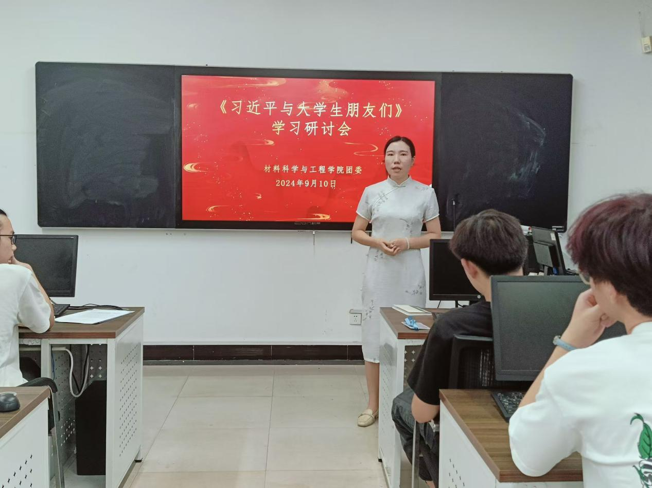 2024年9月11日,为深刻理解和领会习近平总书记对青年大学生的深切期望和诚挚教导,材料学院于教学五号楼307室,举行了《习近平与大学生朋友们》学习研讨会。团委副书记张俊芳出席本次研讨会。