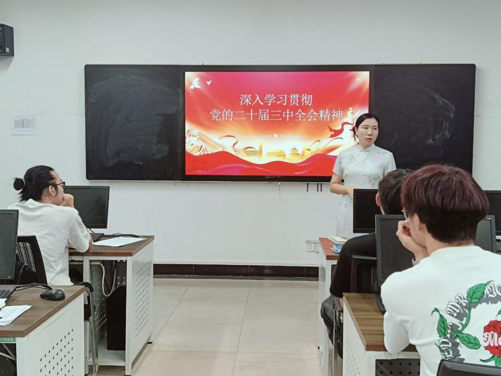 团课伊始,张俊芳老师首先强调了党的二十届三中全会的重大意义。她指出,此次全会是以中国式现代化全面推进强国建设、民族复兴伟业的关键时期召开的一次十分重要的会议,张俊芳老师围绕党的二十届三中全会的核心内容和精神实质,进行了系统而深入的讲解。她详细阐述了全会关于全面深化改革、推进中国式现代化的总体部署和具体要求,通过生动的案例分析和深入浅出的理论阐述,使参会同学对全会精神有了更加全面和深刻的理解。团课过程中,张俊芳老师结合学院实际情况,对同学们提出了具体的要求和希望。她鼓励大家将专业学习与组织活动相结合,在团委、学生会及学生组织中不断锻炼自己,提高综合素质和能力水平。通过此次团课的学习,不仅加深了对党的二十届三中全会精神的理解和认识,也明确了今后学习和工作的方向和目标。