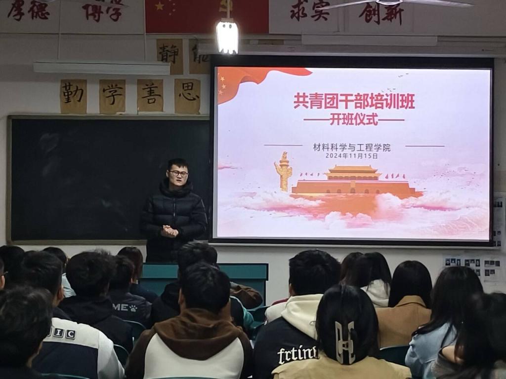 为进一步加强对团干部的培训教育,提高其思想认识和综合素养。材料学院于2024年11月15日晚上在教学七号楼229开展了团学干部培训开班典礼。此次典礼由叶好运老师主持,参加人员包括2024级班长、组织委员、学生会及学生组织部门负责人。