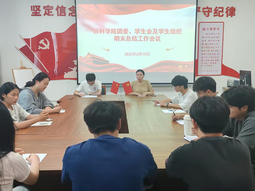 为全面梳理本学期各项工作成果,交流宝贵经验,明确未来发展方向,凝聚学生骨干力量。材料学院于6月19日下午在教学五号楼309召开了“材料学院团委、学生会及学生组织期末总结工作会议”,本次会议由团委副书记张俊芳老师和叶好运老师主持,各部门主席参与。